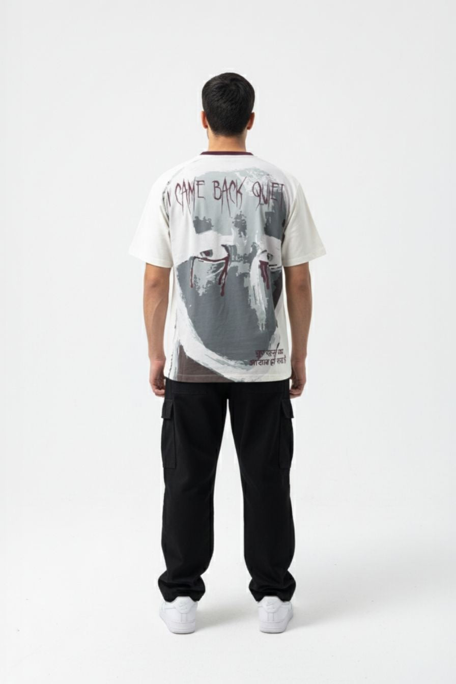 Crafted from midweight cotton in off-white, it balances grit with introspection — made for those who carry their stories softly.