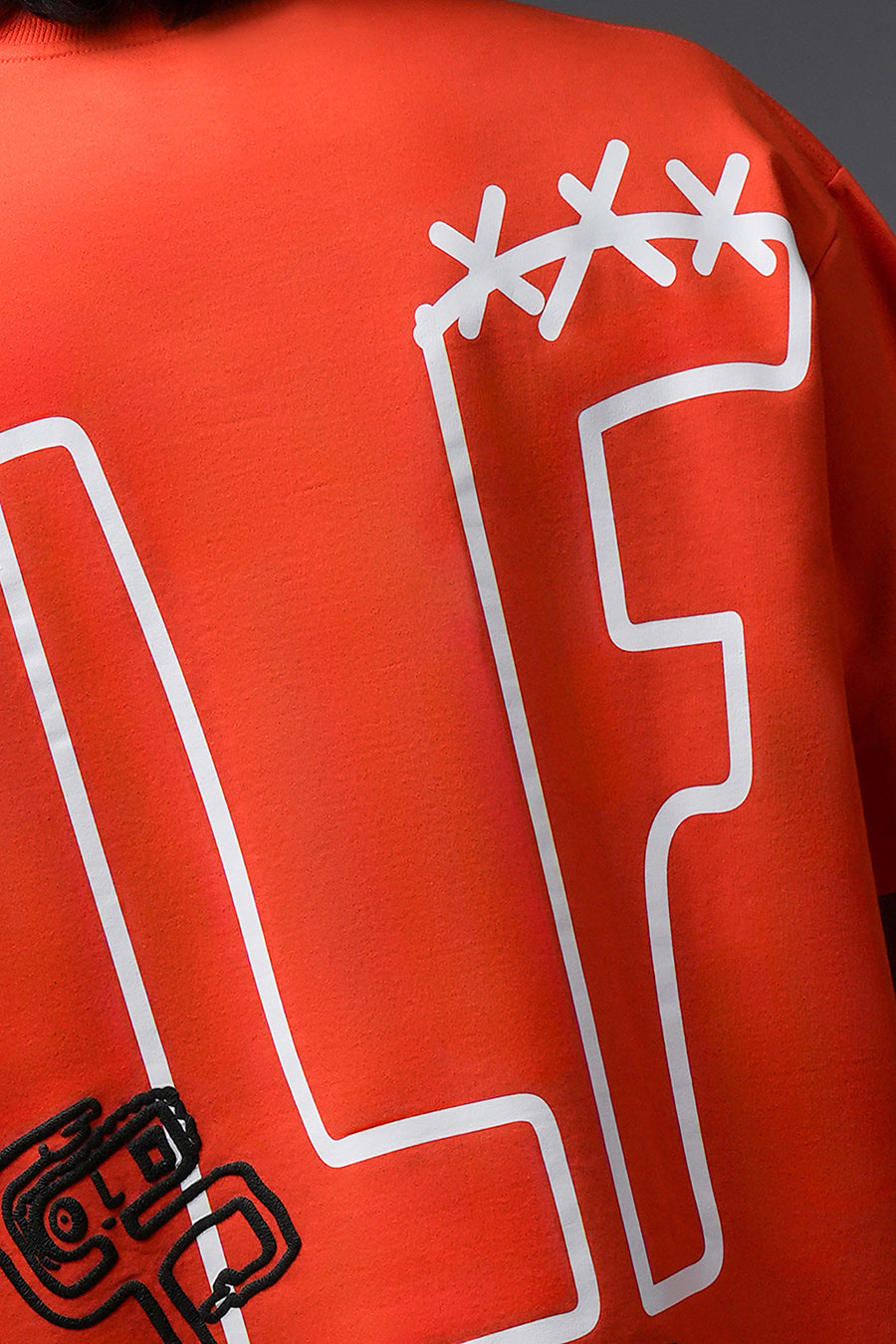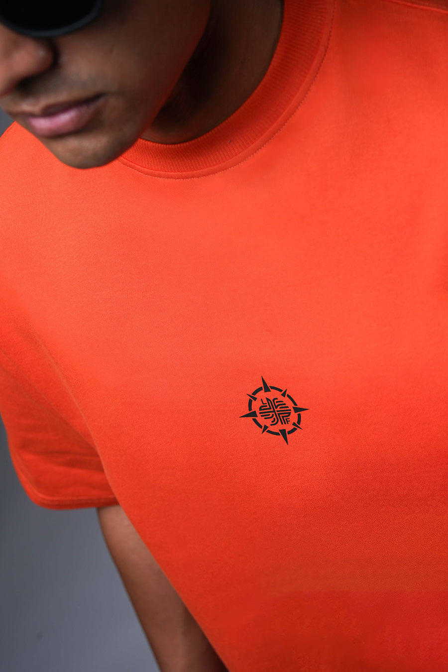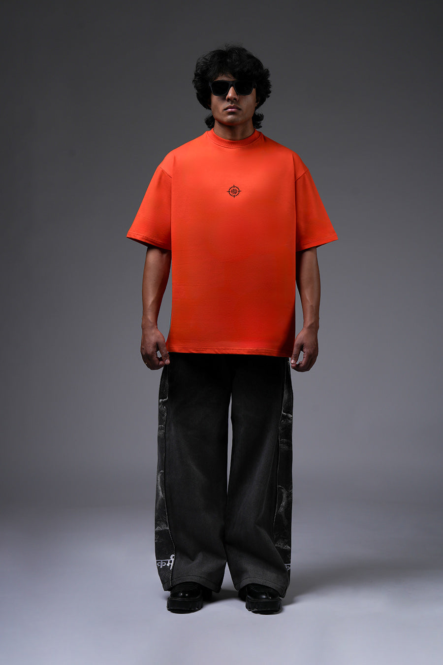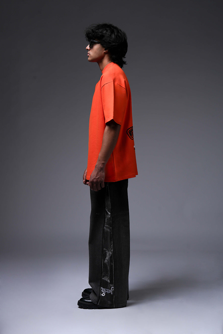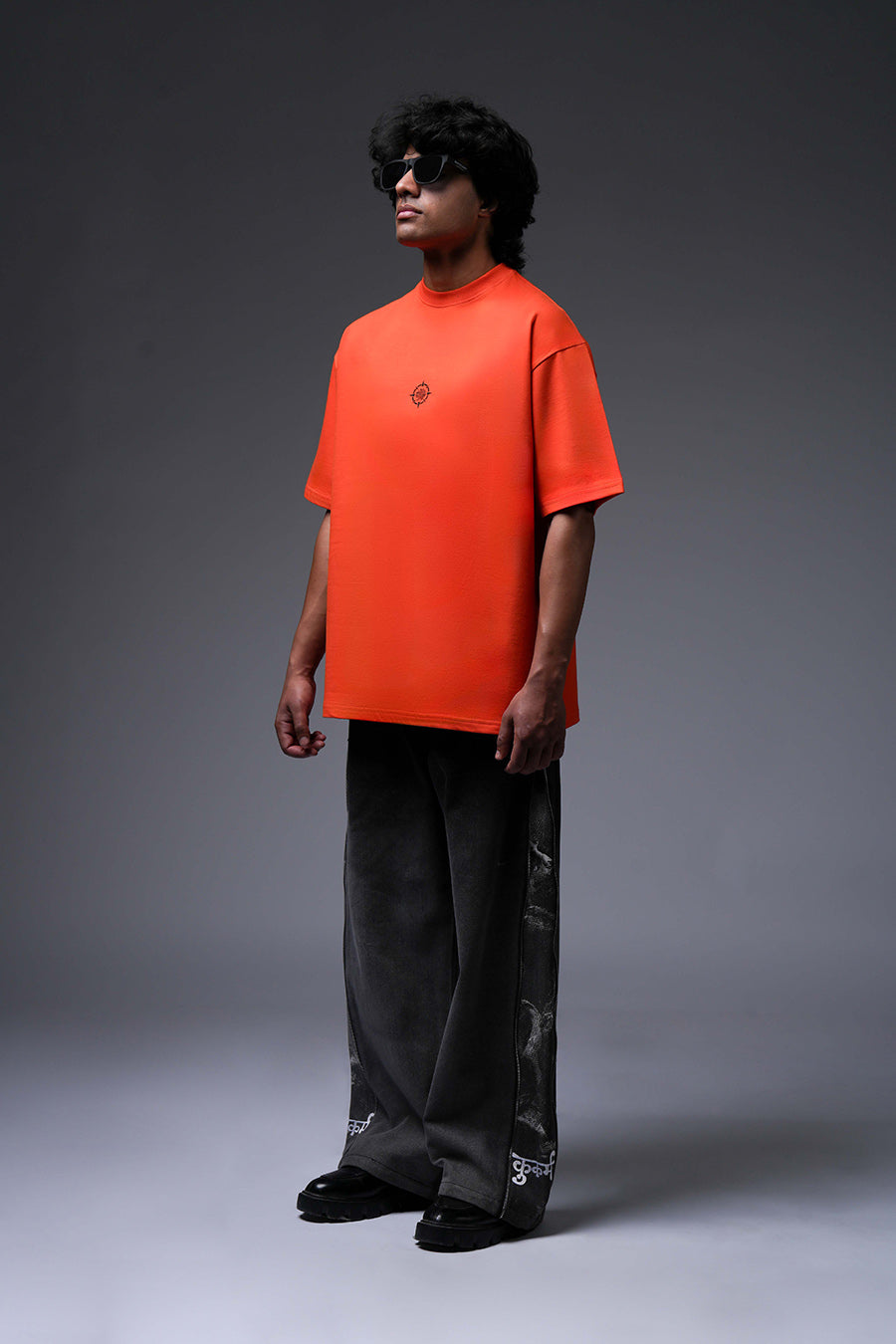 This vibrant orange tee, made from heavyweight 250+ GSM cotton, combines comfort with a striking, coded graphic. The roomy, oversized cut and classic round neckline offer a casual yet impactful silhouette. The soft, durable 100% cotton twill material features a mix of puff and standard media printing, adding texture and visual depth. Ideal for making a statement or layering with ease.