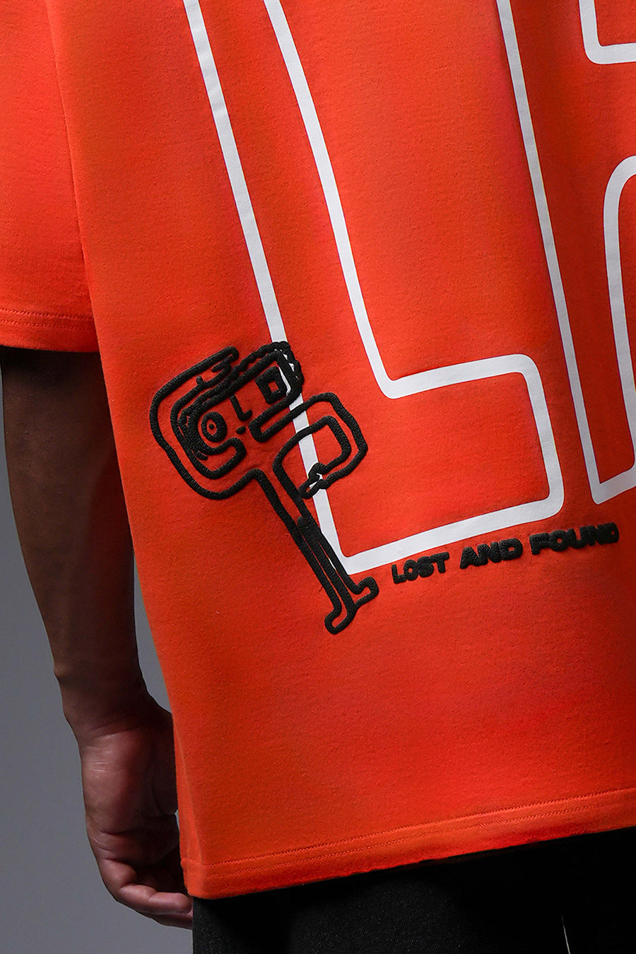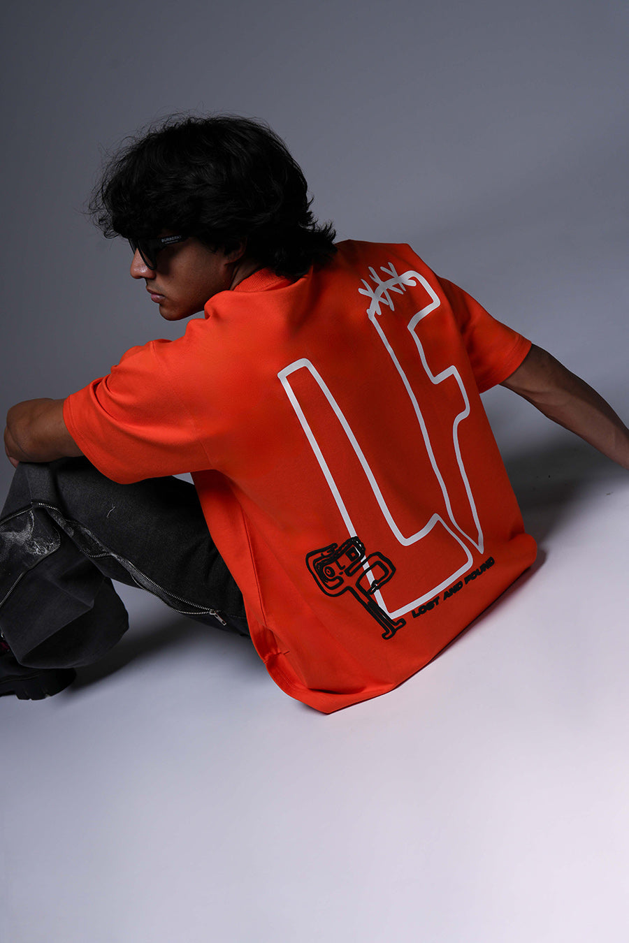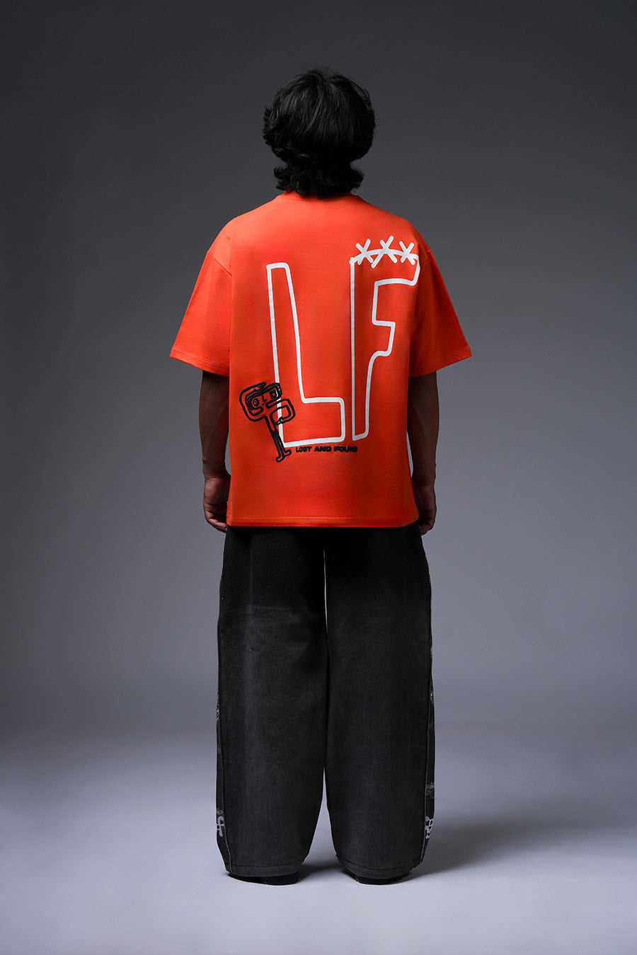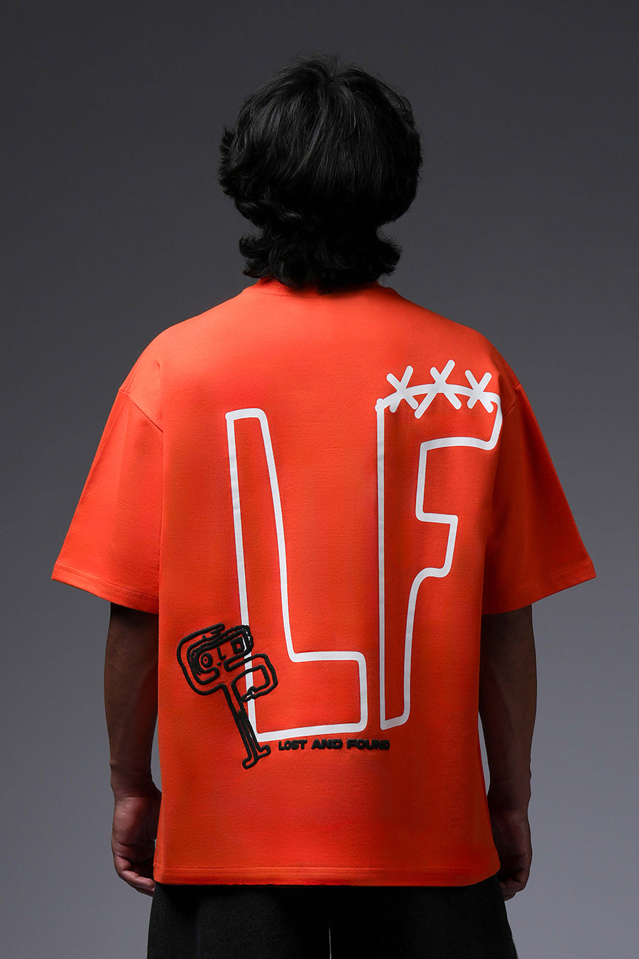 The Cracked Code Tee is a vibrant statement of deciphered mystery. A bold, oversized "LF" graphic dominates the bright orange canvas, suggesting a solved puzzle or hidden message. The distorted key and triple asterisk details add an enigmatic, coded element. This tee evokes a sense of discovery and unlocking secrets. Its oversized fit enhances the bold, urban aesthetic. It's a wearable piece that blends graphic impact with a touch of cryptic intrigue.