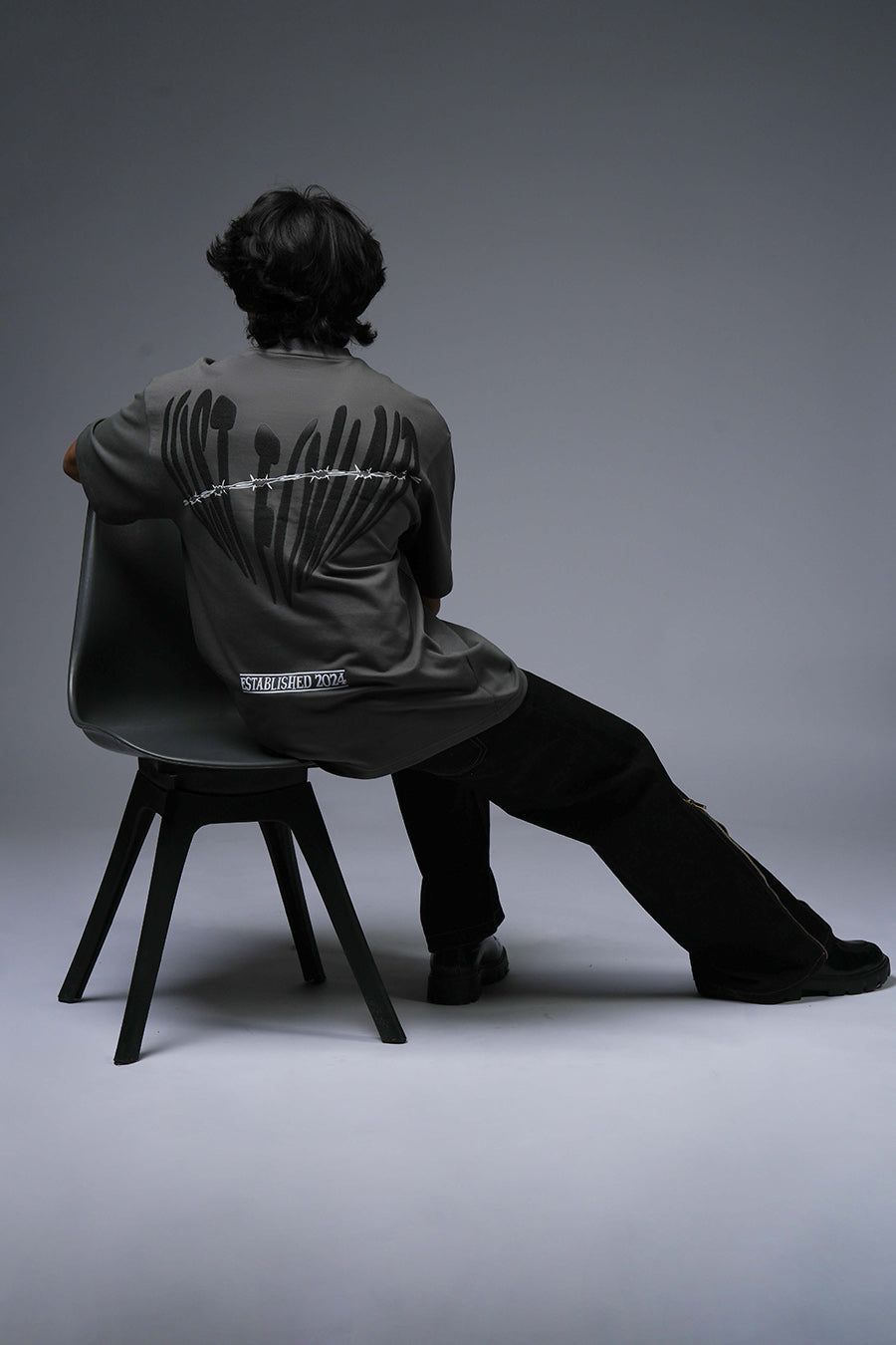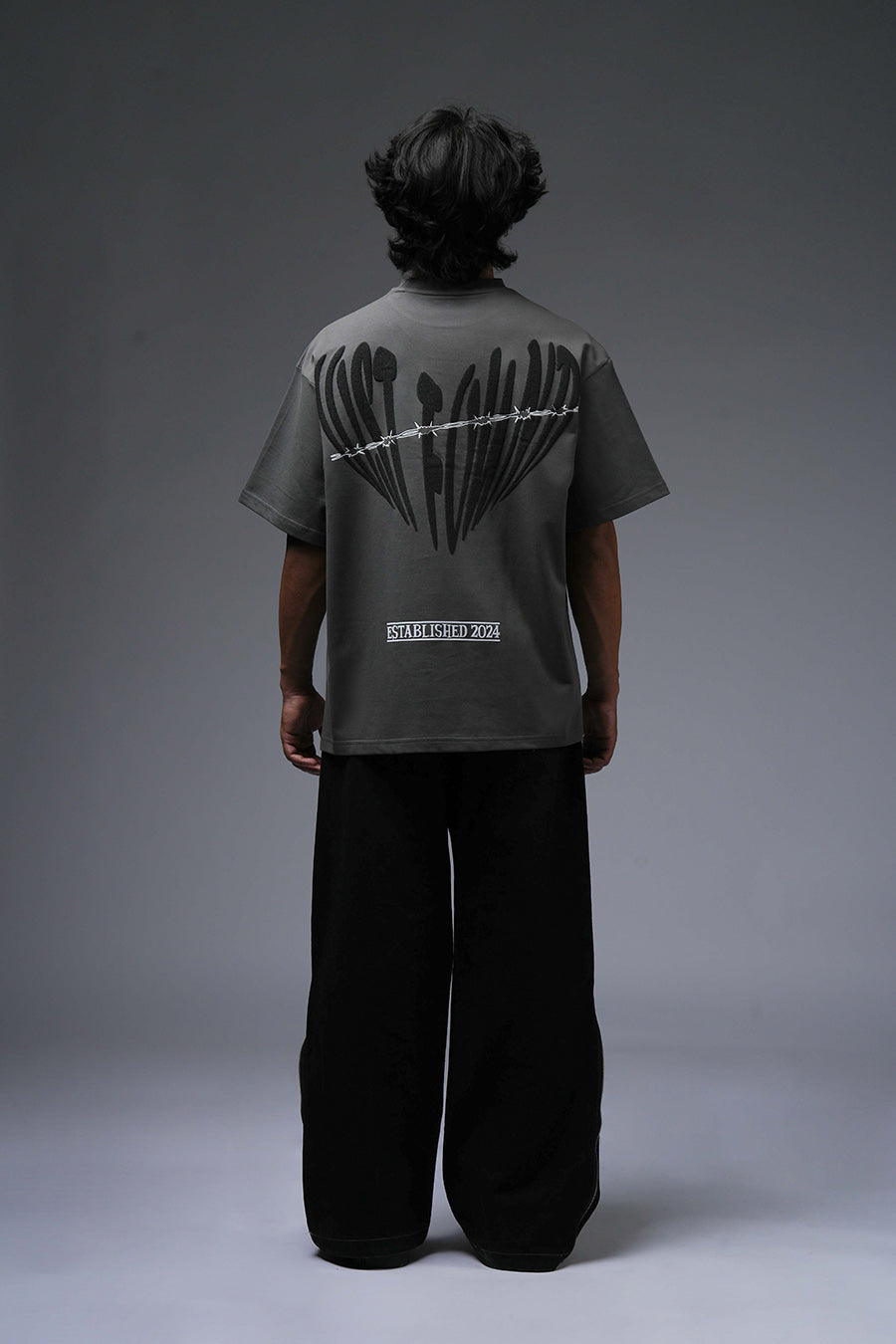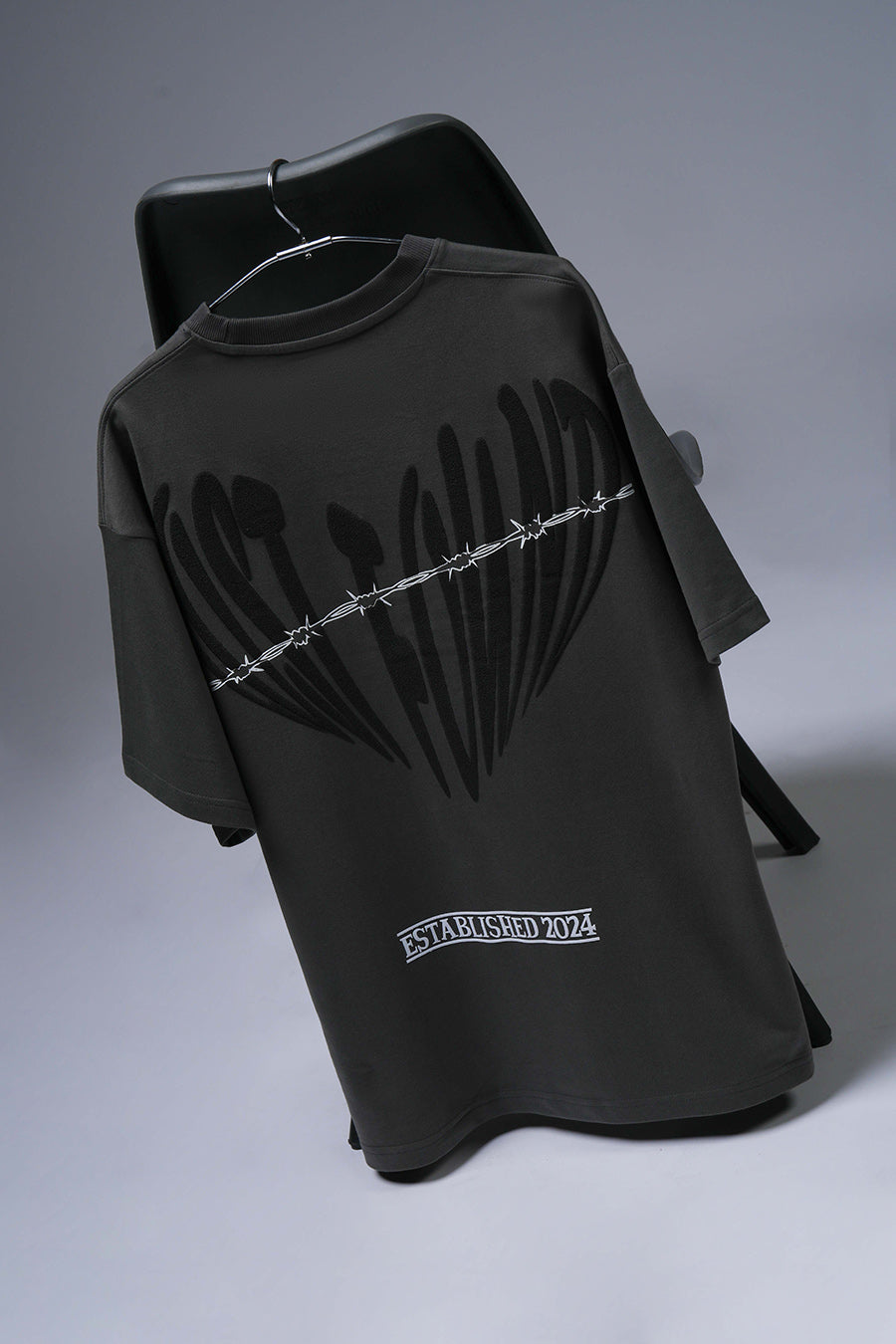 The Distorted Heart tee embodies the raw, unfiltered chaos of emotion—where love, pain, and rebellion intertwine. Its bold yet fractured design mirrors a heart that has been torn apart yet still beats defiantly, refusing to be silenced. The barbed wire slicing through symbolizes struggle, resilience, and the beauty found in imperfection. Crafted in a deep, muted tone with striking contrasts, this piece speaks to those who embrace their scars as part of their journey. A statement of strength, vulnerability, and the relentless pursuit of self-discovery.