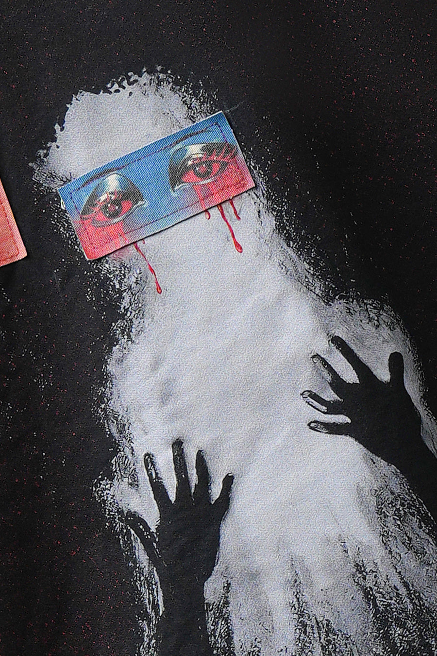 This tee, crafted from heavyweight 250+ GSM cotton, blends comfort with a thought-provoking, narrative-driven design. The roomy, oversized cut and classic round neckline offer a casual yet impactful silhouette. The soft, durable 100% cotton twill material features direct-to-garment printing, along with embedded patches, creating a layered, textured effect. Ideal for making a unique statement or layering with ease.