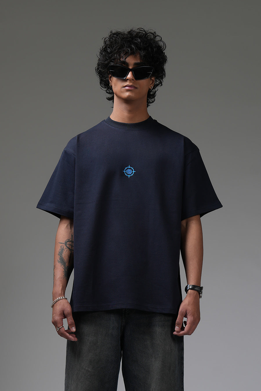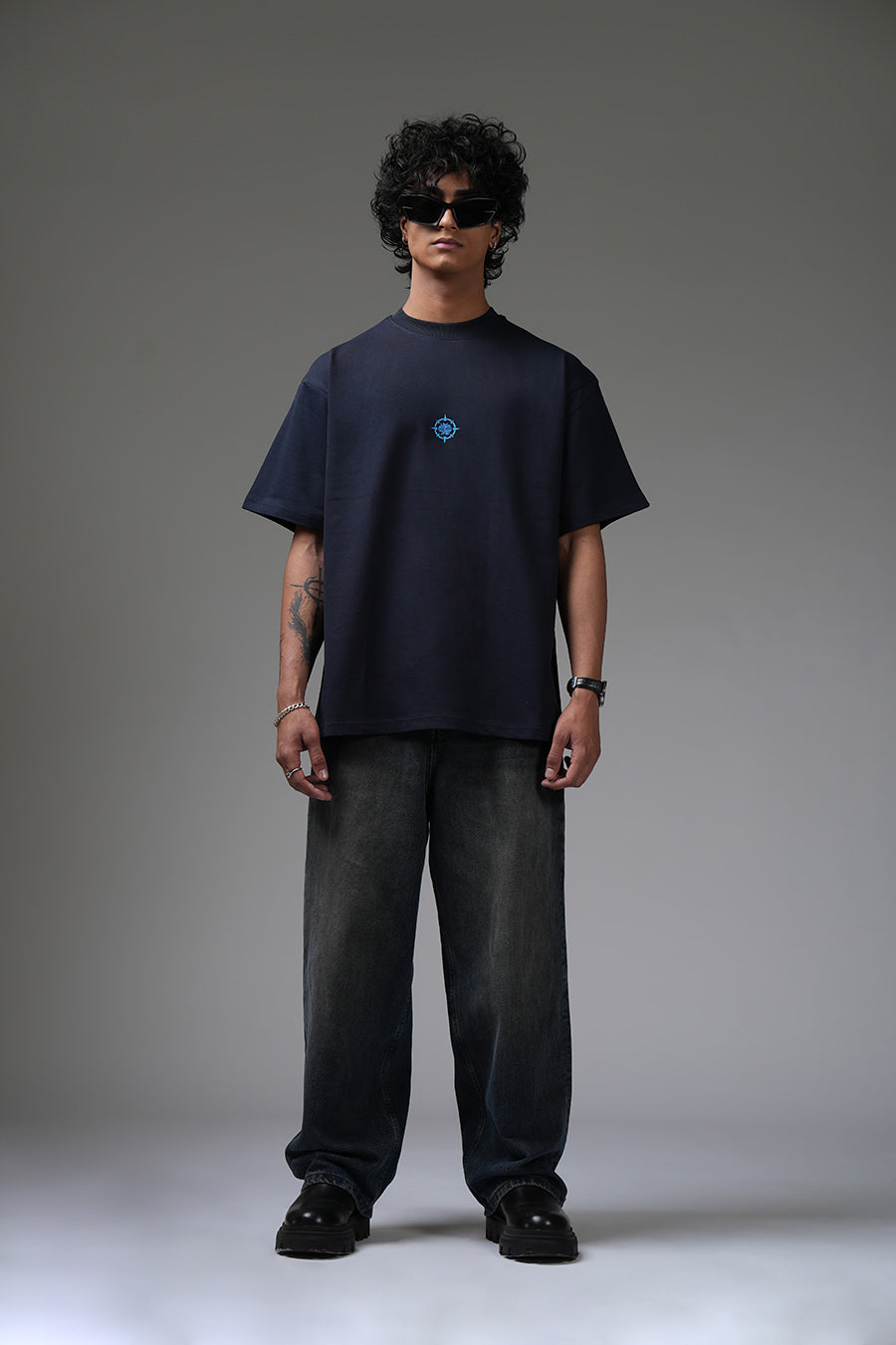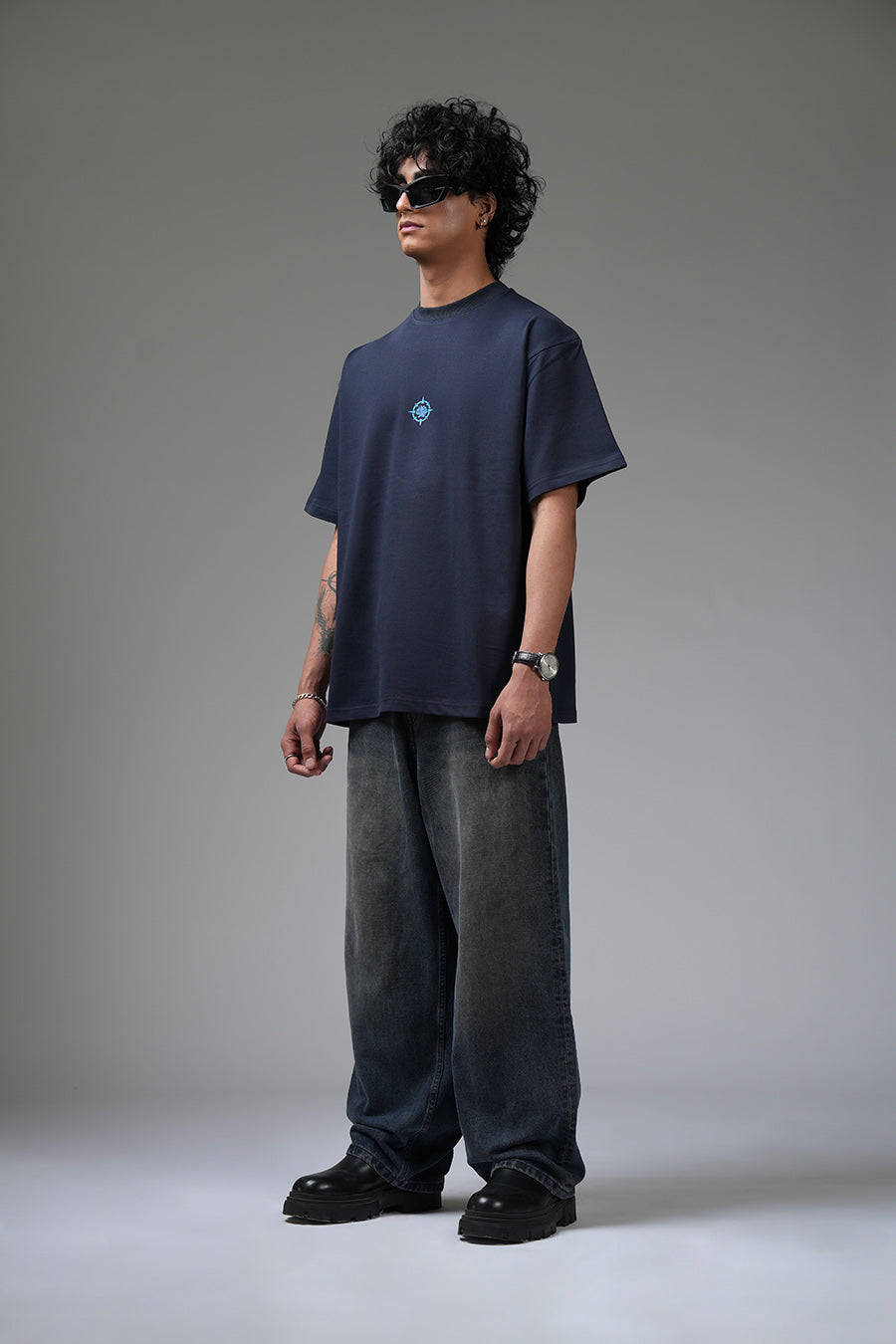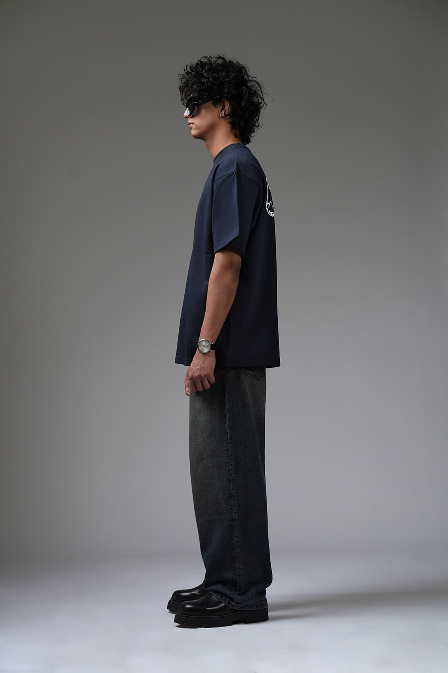 The Feral Direction Tee evokes a blend of wild elegance and enigmatic guidance. A stylized, white-lined panther, poised in a dynamic pose, dominates the dark fabric. Delicate blue floral accents add a touch of contrast and mystery. This design suggests a journey guided by instinct and untamed spirit. The oversized fit enhances the sense of freedom and movement. It's a wearable statement of following one's primal urges, with a hint of ethereal beauty.