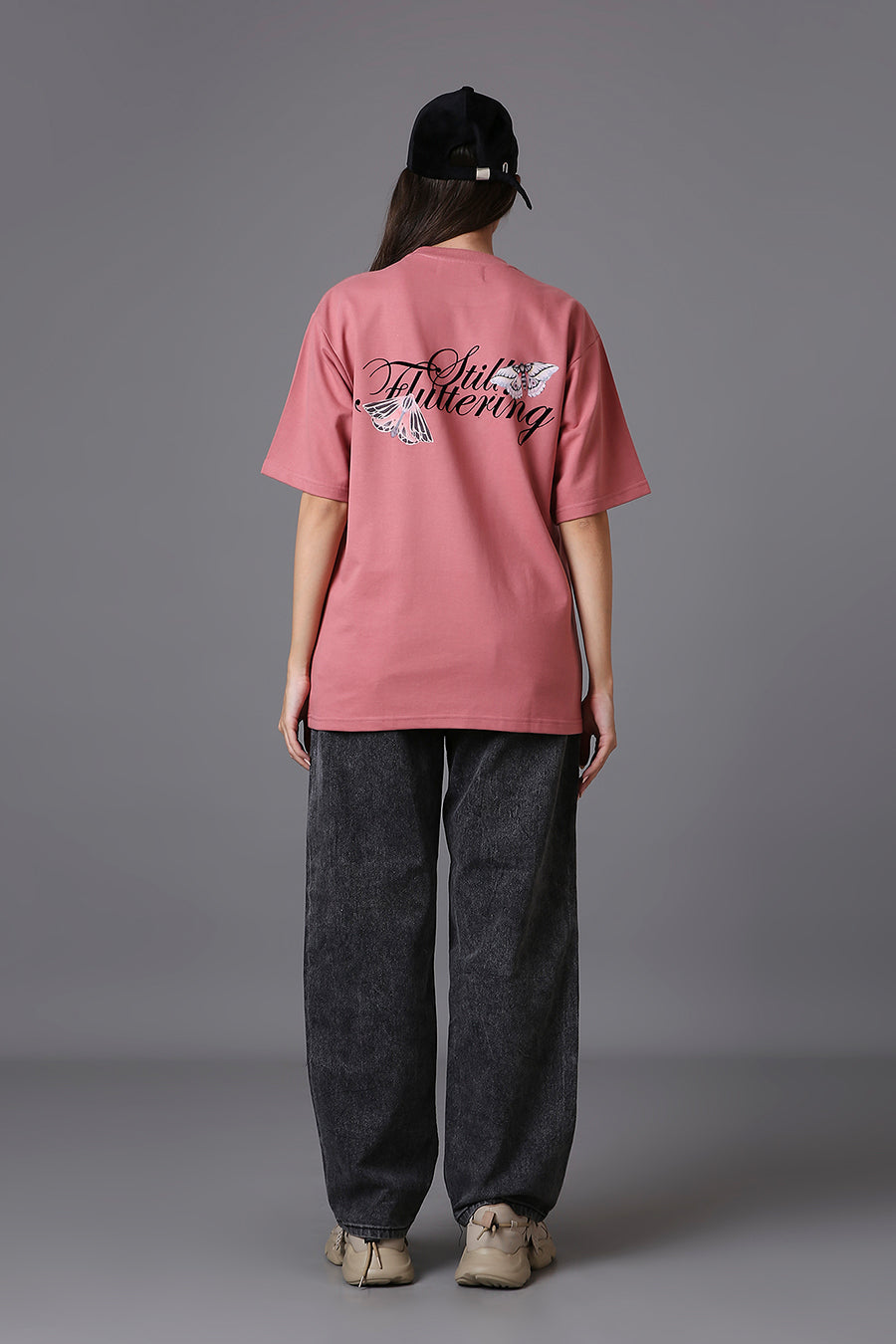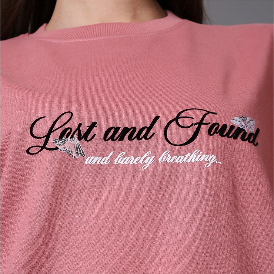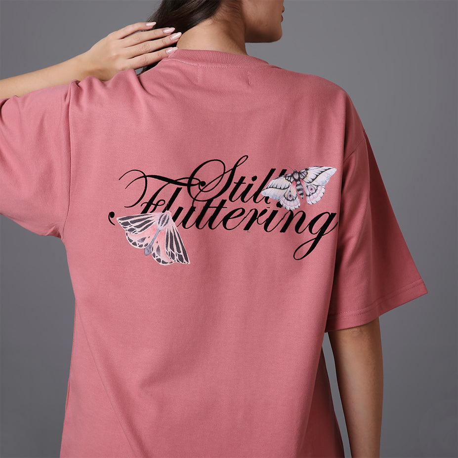 The "Lost Flutter" Tee blends a gentle elegance with a quiet strength. In a muted rose hue, the front features a refined “Lost and Found” script, hinting at stories of discovery and resilience. Turning to the back, two intricately detailed butterflies in motion frame the words “Still Fluttering” — a poetic nod to endurance, transformation, and beauty in persistence. The design captures the grace of movement and the resilience to keep going, even after challenges.