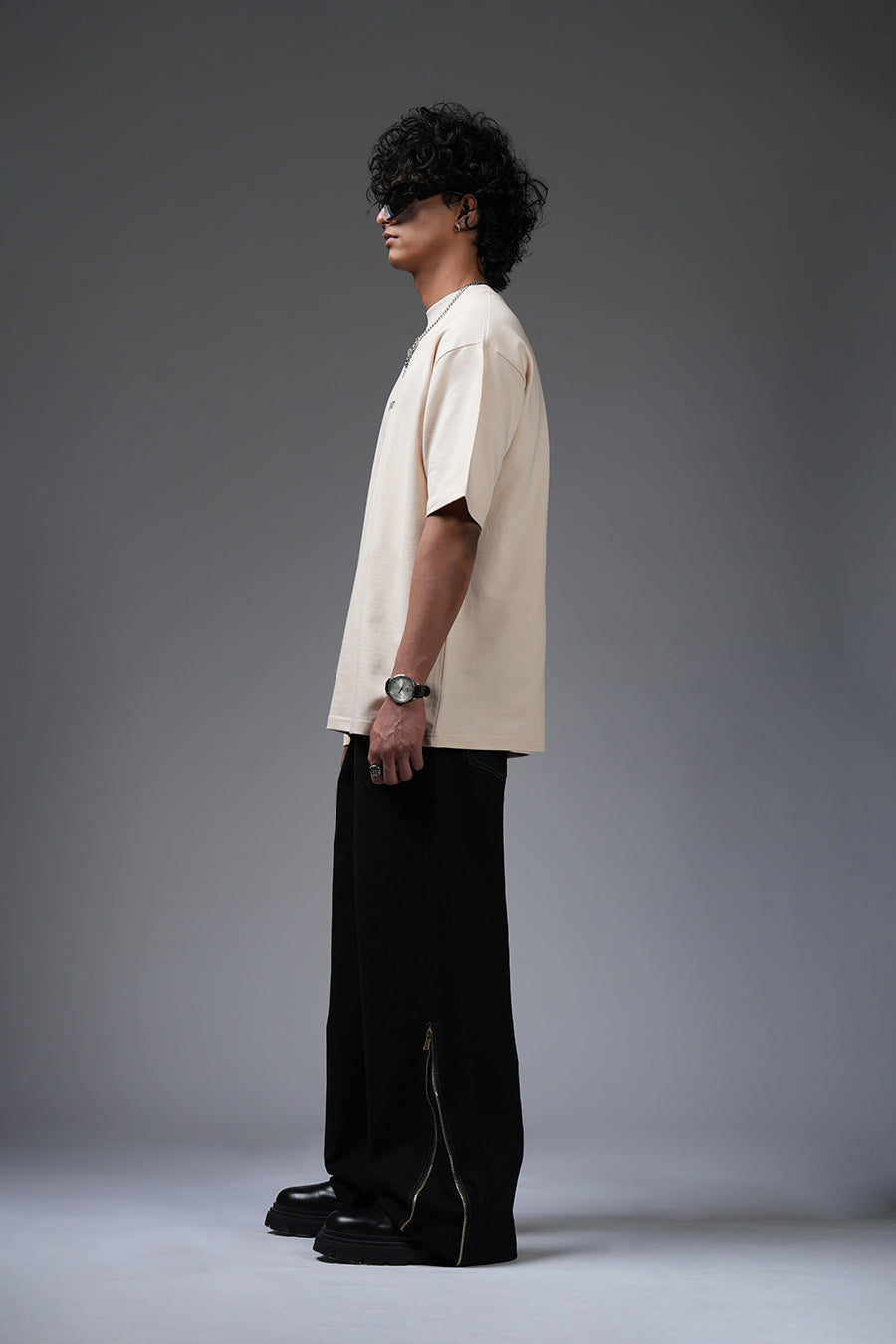 This tee, constructed from heavyweight 250+ GSM cotton, blends comfort with a striking artistic design. The roomy, oversized cut and classic round neckline offer a casual yet impactful silhouette. The soft, durable 100% cotton twill material features a raised, textured puff print graphic for added depth. Ideal for making a statement or layering with ease.