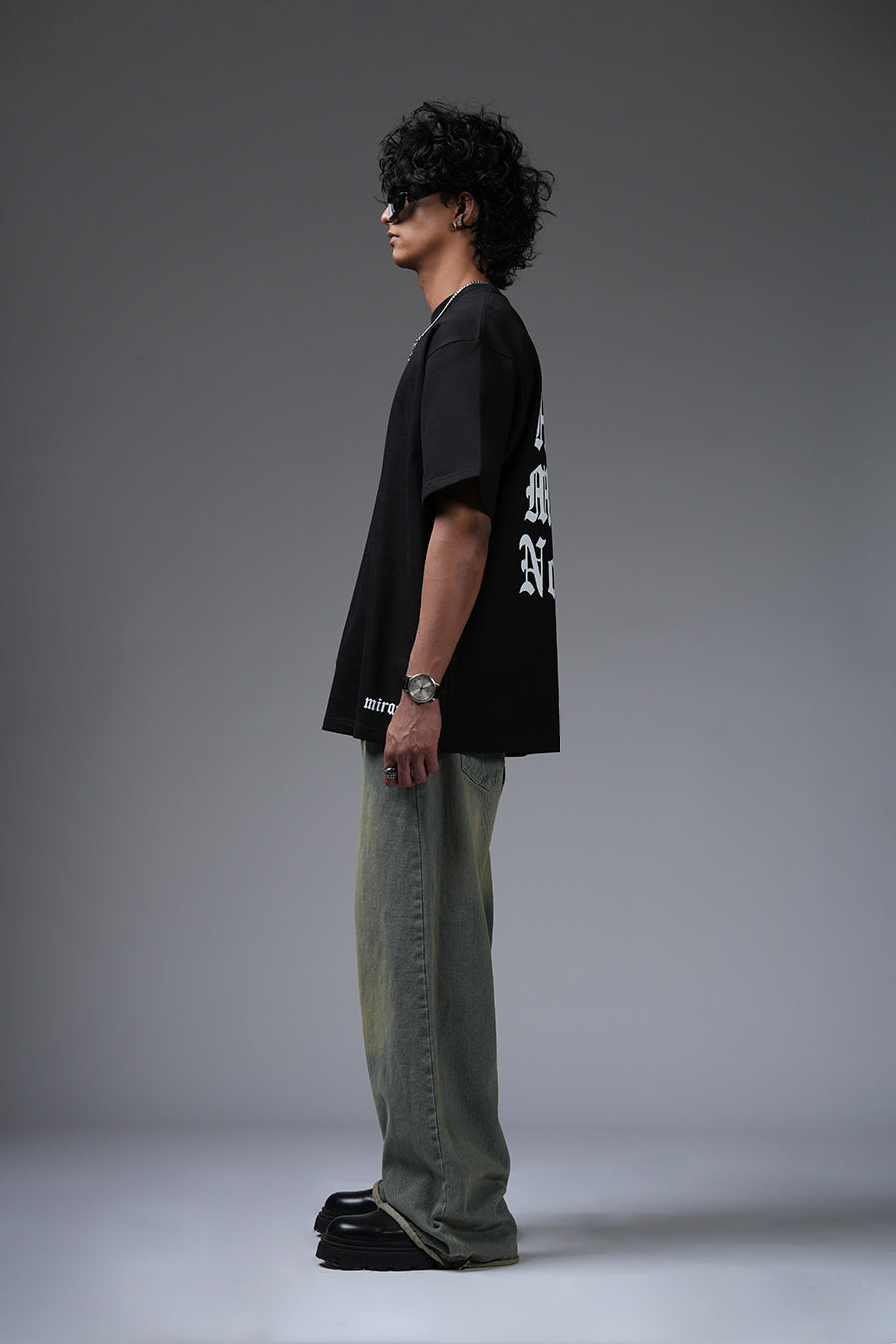 Crafted from heavyweight, 250+ GSM cotton, this t-shirt balances premium comfort with striking style. Its oversized fit and classic round neck offer a relaxed, contemporary silhouette, ideal for versatile styling. The 100% cotton twill fabric provides a soft, durable base, while the flock printing technique adds a unique, textured dimension to the design.