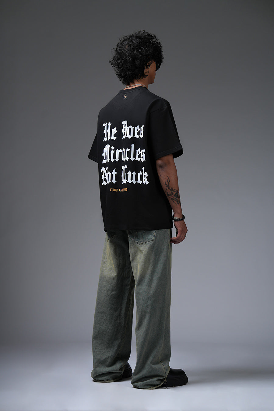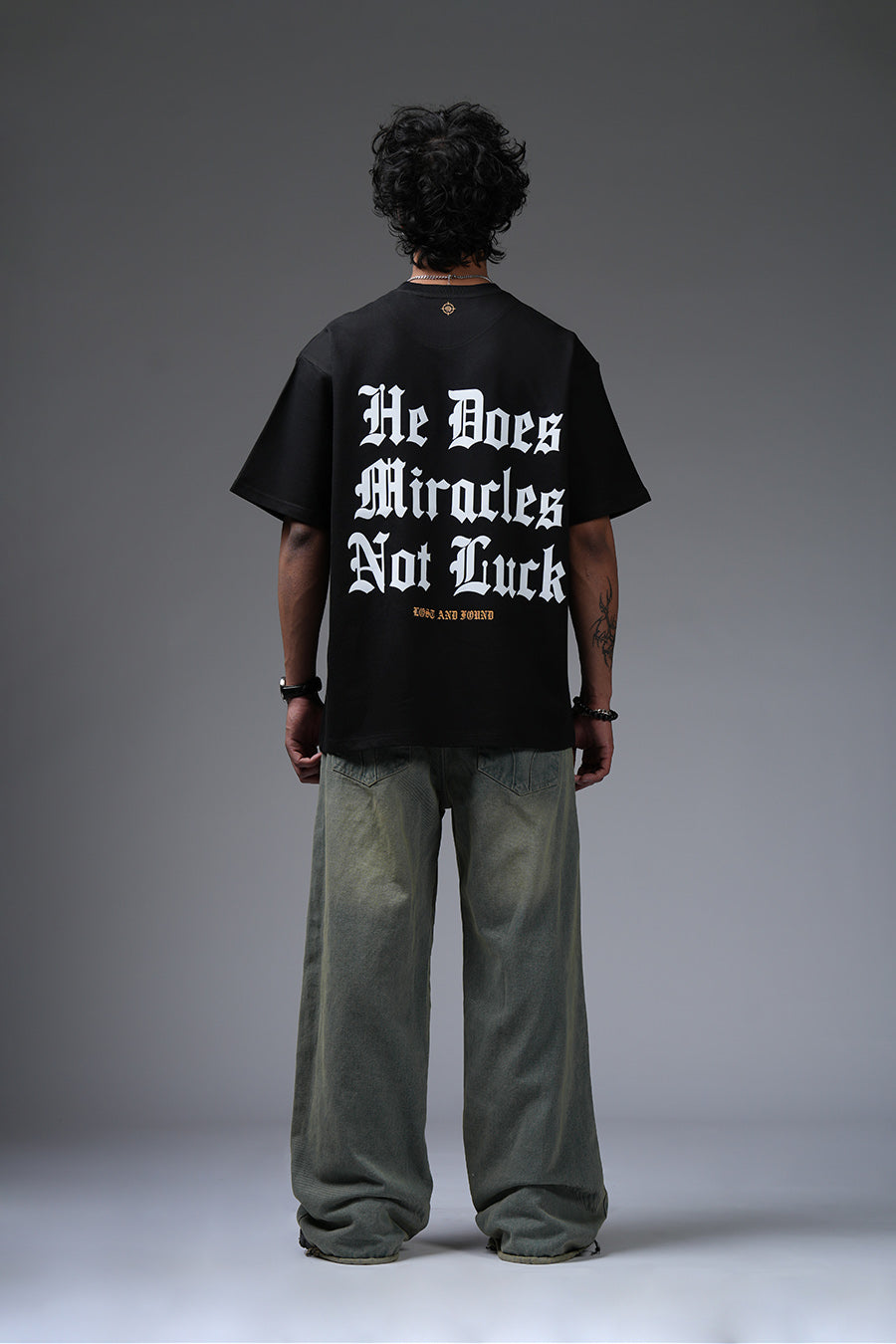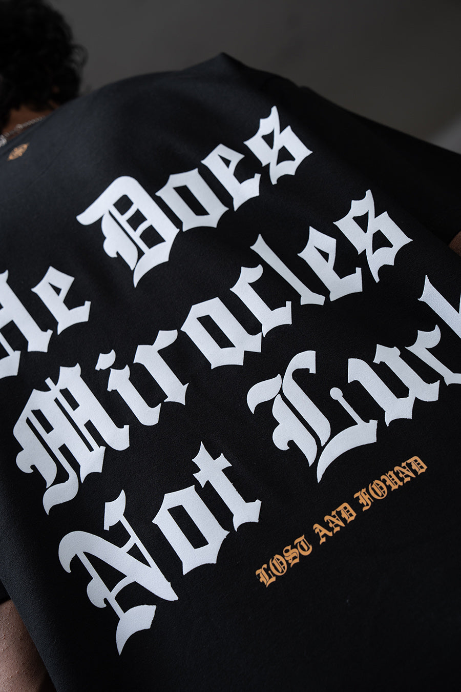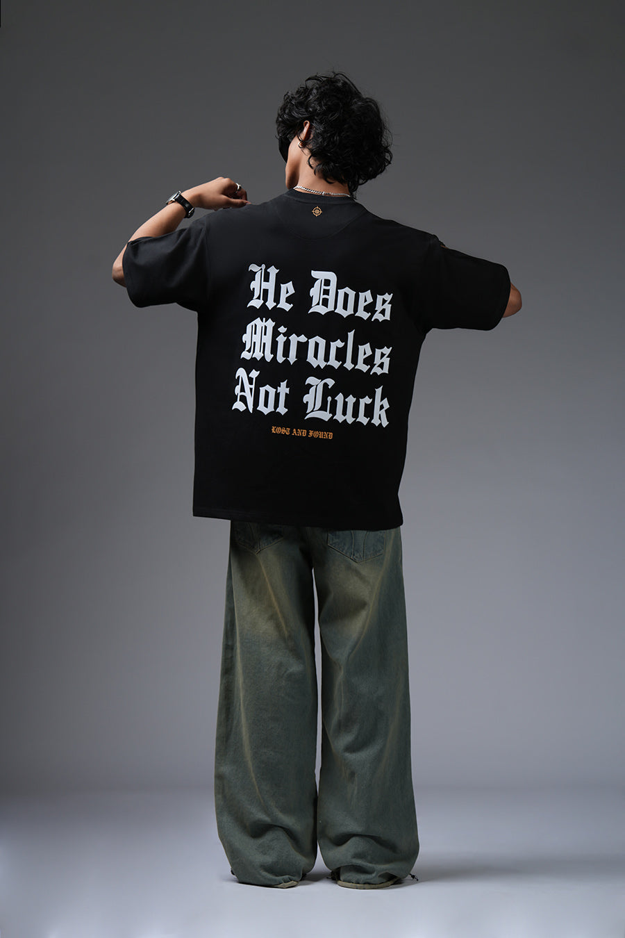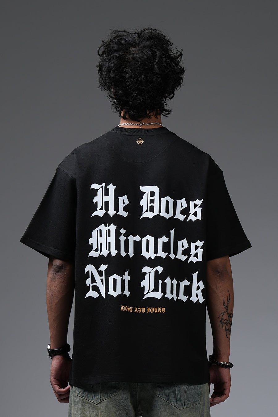 The Miracle Tee champions unwavering belief. "He Does Miracles Not Luck" asserts a faith-driven narrative, its bold typography commanding attention. The oversized silhouette offers a contemporary, relaxed fit, blending street style with a message of spiritual empowerment. This piece serves as a daily affirmation, a wearable reminder that extraordinary outcomes stem from divine intervention, not mere chance. It's a statement for those who embrace faith as a cornerstone of their journey, projecting confidence and conviction.