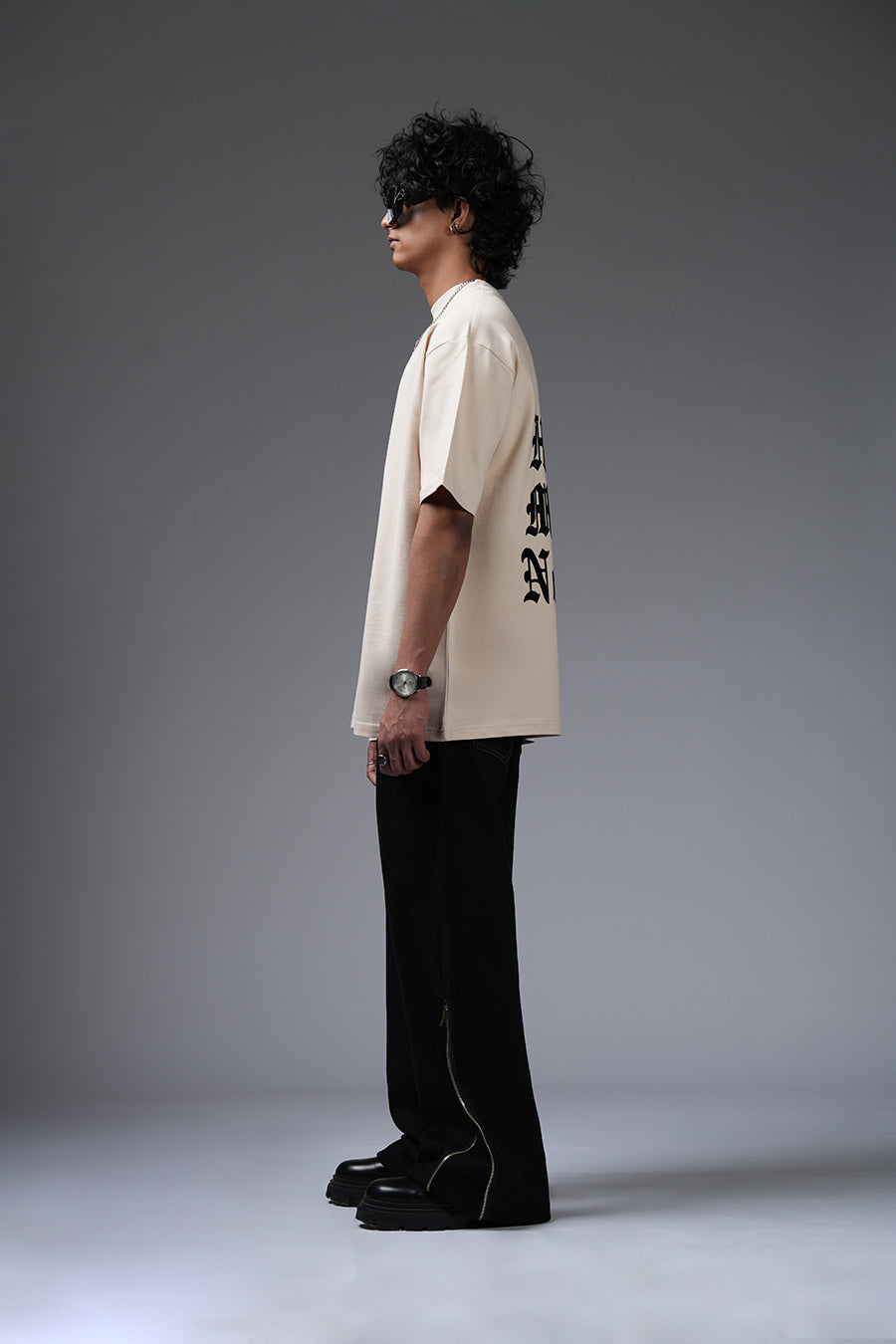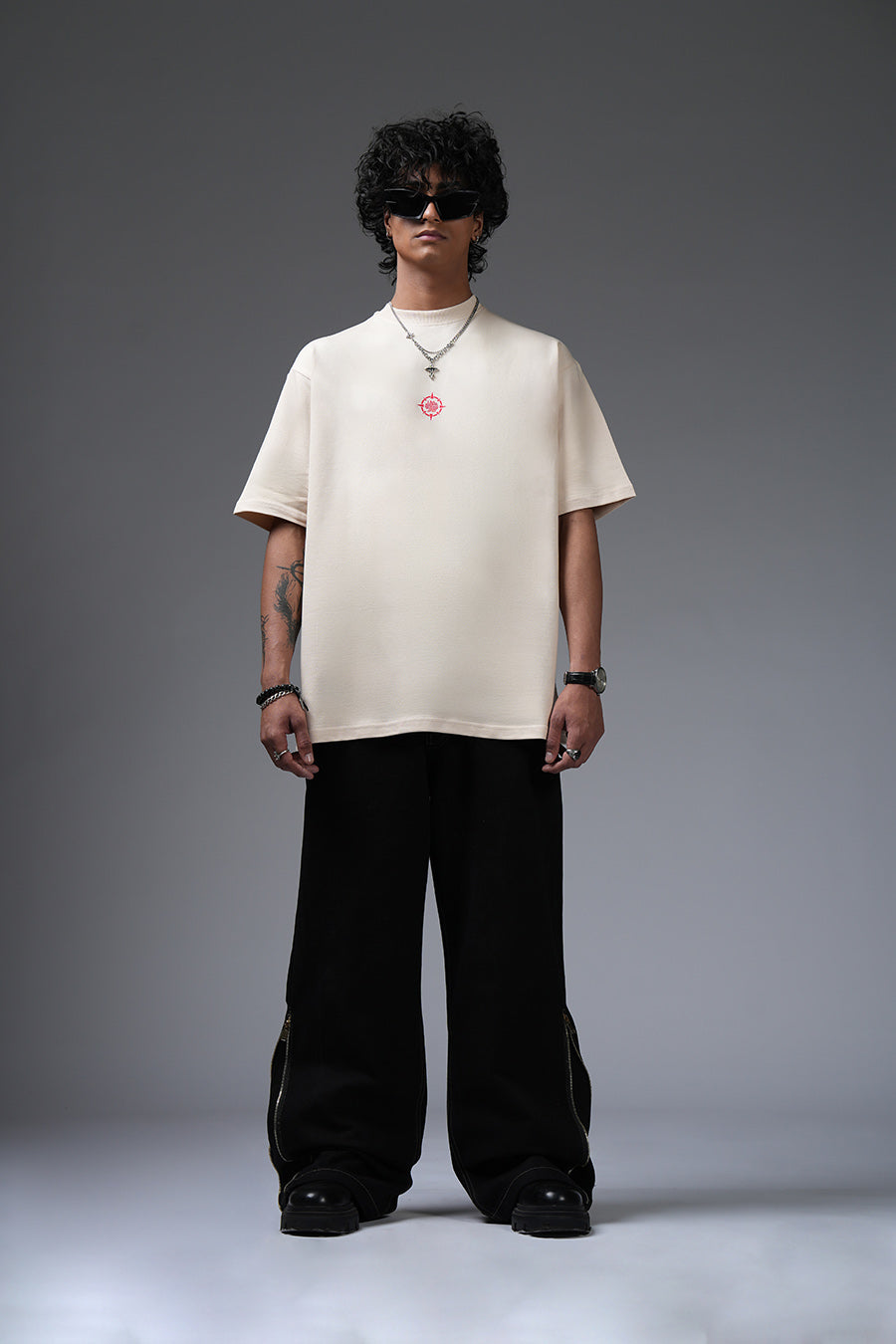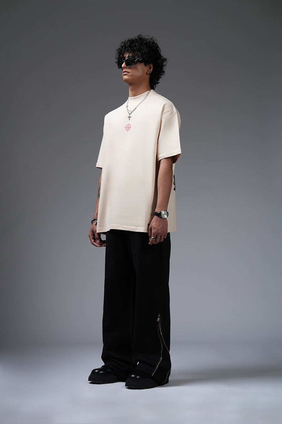 Crafted from heavyweight, 250+ GSM cotton, this t-shirt balances premium comfort with striking style. Its oversized fit and classic round neck offer a relaxed, contemporary silhouette, ideal for versatile styling. The 100% cotton twill fabric provides a soft, durable base, while the flock printing technique adds a unique, textured dimension to the design.