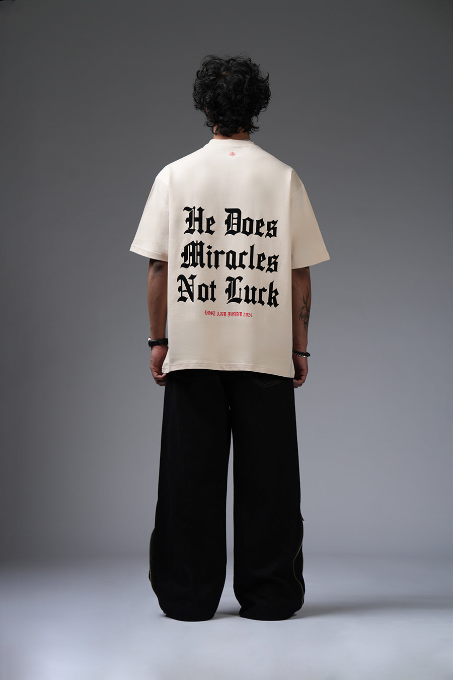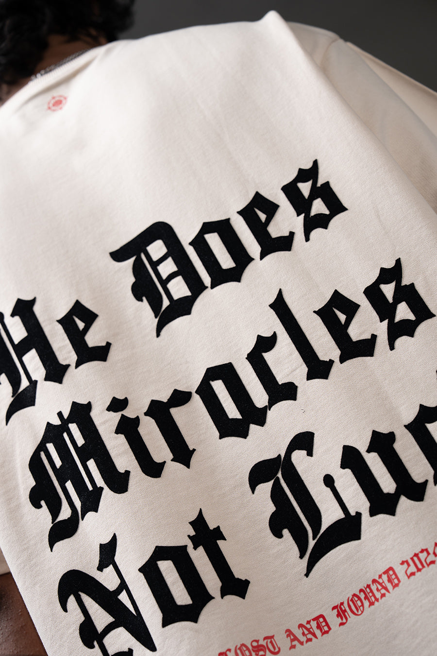 The Miracle Tee champions unwavering belief. "He Does Miracles Not Luck" asserts a faith-driven narrative, its bold typography commanding attention. The oversized silhouette offers a contemporary, relaxed fit, blending street style with a message of spiritual empowerment. This piece serves as a daily affirmation, a wearable reminder that extraordinary outcomes stem from divine intervention, not mere chance. It's a statement for those who embrace faith as a cornerstone of their journey, projecting confidence and conviction.