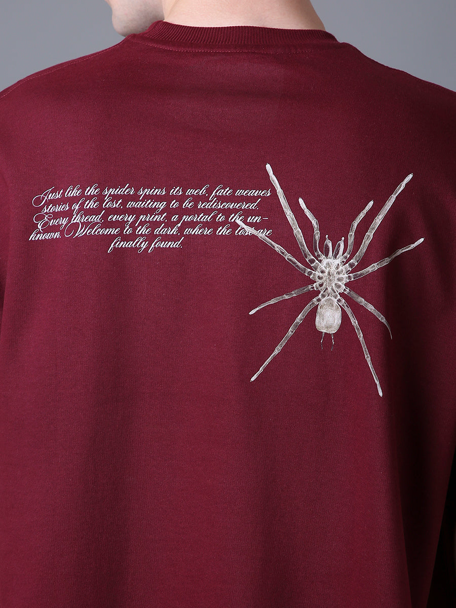 The back carries the story further — an oversized spider emerges alongside cryptic handwritten text, stretching its web across the canvas. The design captures both unease and fascination, a reminder that not everything that creeps in the dark stays hidden.