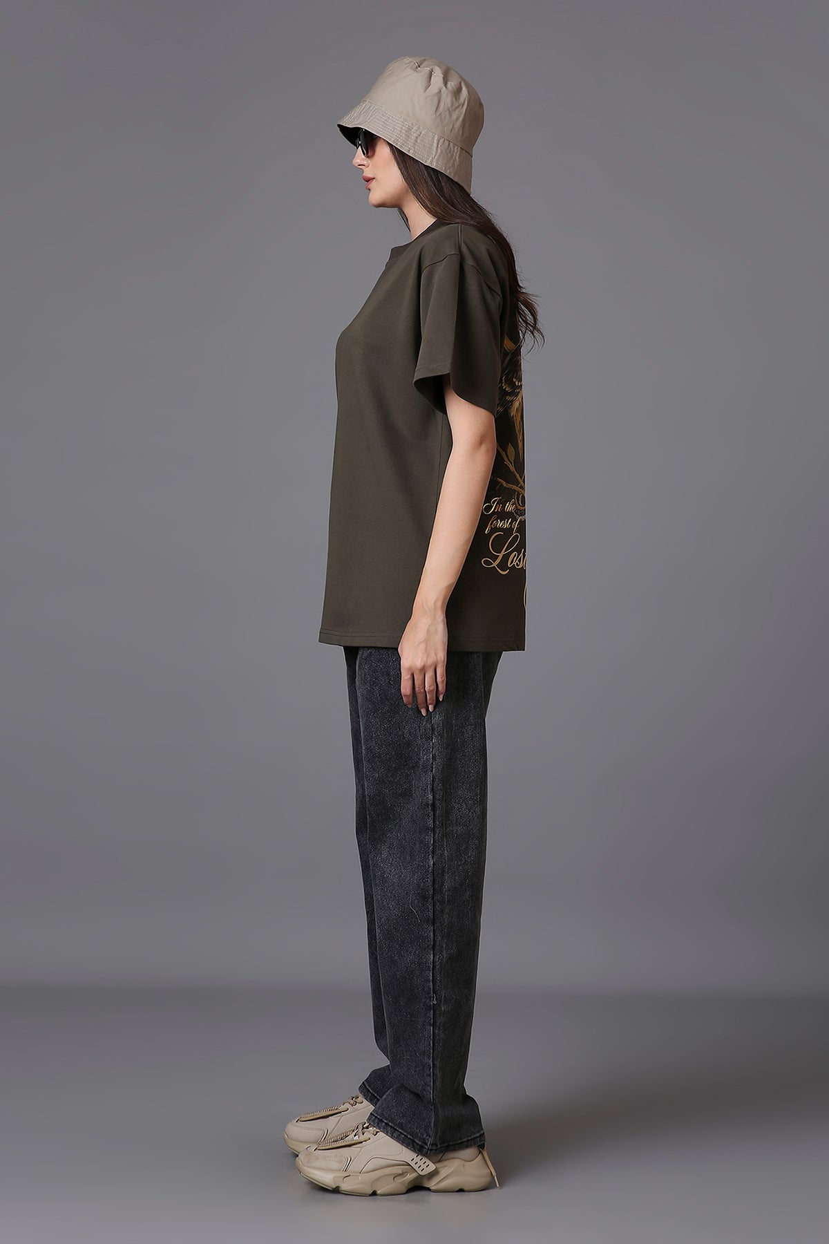 This tee, crafted from heavyweight 250+ GSM cotton, blends comfort with a thought-provoking, narrative-driven design. The roomy, oversized cut and classic round neckline offer a casual yet impactful silhouette. The soft, durable 100% cotton twill material features direct-to-garment printing, along with Golden Foil Printing Puff Printing, creating a layered, textured effect. Ideal for making a unique statement or layering with ease.